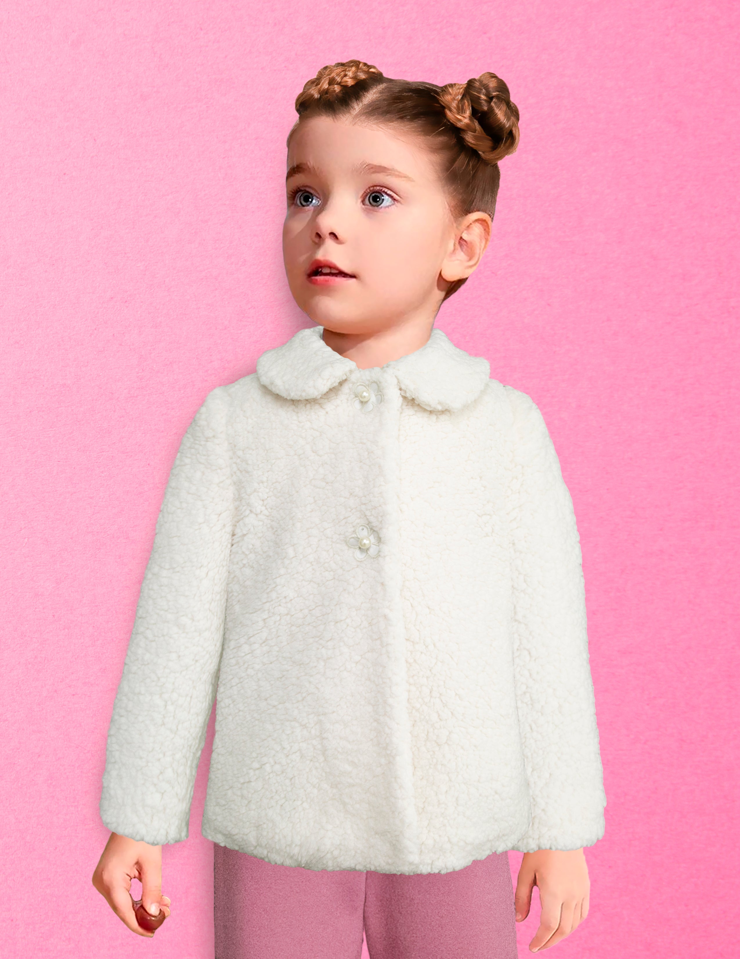 Envuelve a tu pequeña en la cálida suavidad de este abrigo de borreguito de Gerat, diseñado especialmente para niñas de 2 y 3 años. Con un diseño clásico en color hueso, este abrigo no solo proporciona comodidad en los días fríos, sino que también añade un toque de elegancia a cualquier atuendo. Sus detalles delicados, como los botones decorados con perlas, hacen que este abrigo sea irresistible para cualquier ocasión. Perfecto para proteger a tu hija del frío mientras luce adorable, este abrigo es la elección que encantará tanto a los papás como a las pequeñas. ¡Haz que cada salida sea especial con Gerat!