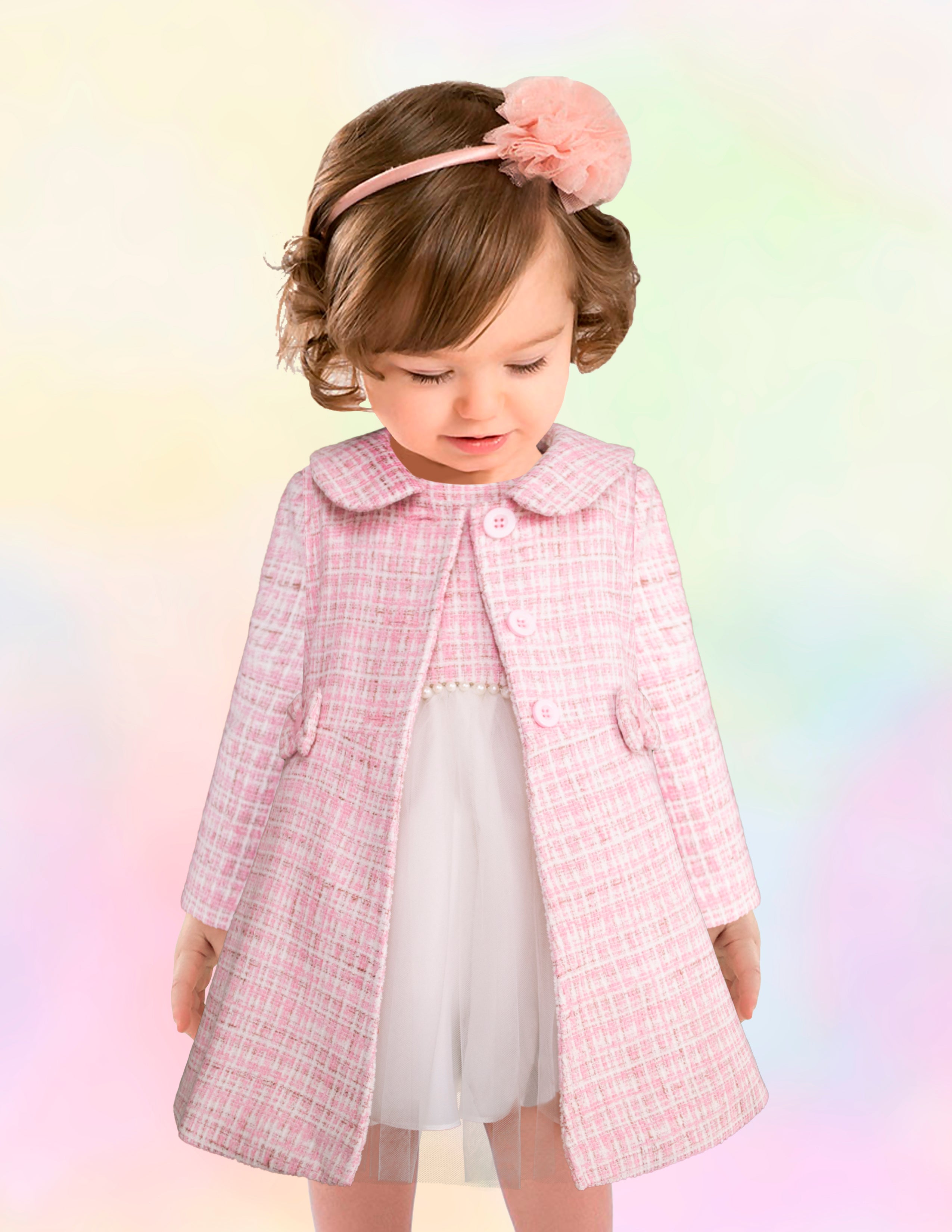 ✅ Abrigo elegante para bebé niña en tweed rosa