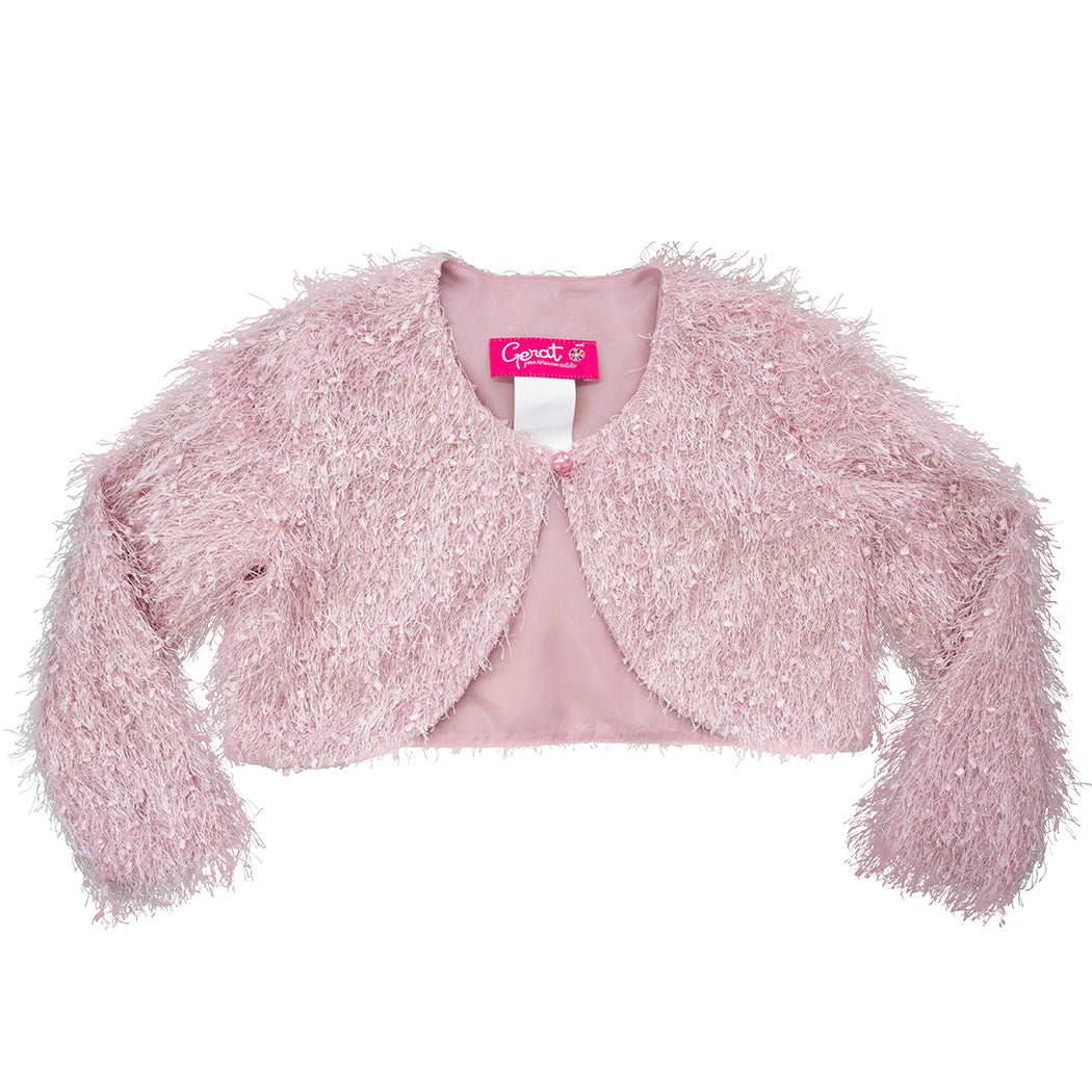 Este suéter de Gerat en color palo de rosa es la prenda ideal para añadir un toque de glamour a cualquier atuendo de fiesta para niñas. Su diseño de textura suave y peluda con detalles brillantes aporta un estilo único y sofisticado que encantará a las pequeñas. Con un corte bolero y cierre de botón de perla, este suéter no solo abriga, sino que también eleva el look para ocasiones especiales. Perfecto para combinar con vestidos y mantener a las niñas abrigadas sin perder el estilo, ¡haz que tu hija brille con este hermoso suéter de Gerat!