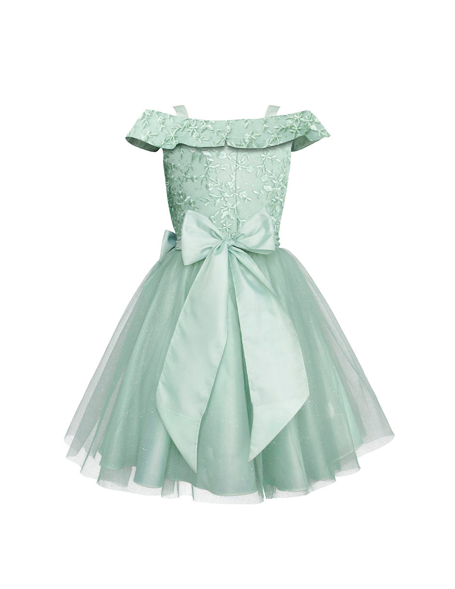 Haz que cada momento especial brille con este elegante vestido de fiesta juvenil Gerat en tono verde menta, ideal para niñas en tallas grandes 10, 12, 14 y 16. Su diseño moderno con tirantes y escote caído estilo off-shoulder realza la figura de forma sutil y encantadora, mientras que la falda de tul con caída amplia y suave brillo le da ese toque mágico perfecto para fiestas, graduaciones, presentaciones o eventos formales.