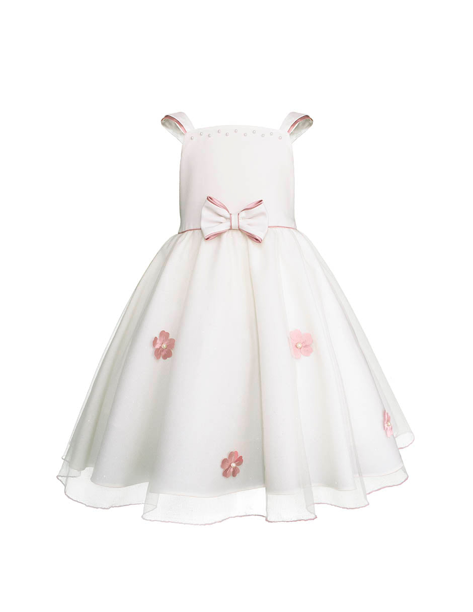 Este delicado vestido de fiesta primavera para niñas en color hueso con detalles en palo de rosa es la definición perfecta de elegancia infantil. Diseñado para momentos especiales, su silueta vaporosa y femenina convierte cada paso en un recuerdo inolvidable.