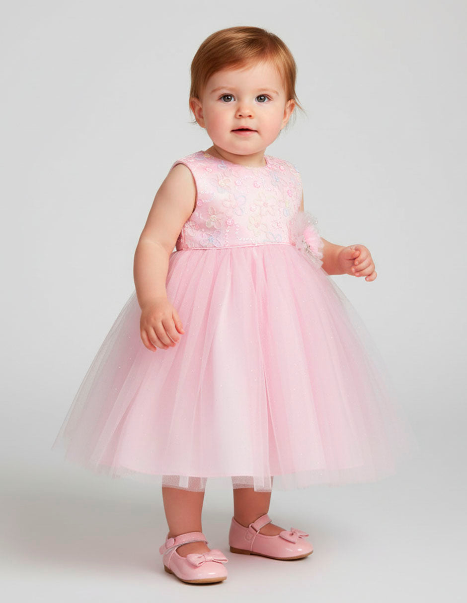 Este tierno vestido rosa para bebé de Gerat es perfecto para celebraciones especiales como bautizos, cumpleaños o sesiones de fotos. Su diseño incluye un corpiño con delicados bordados de mariposas, una falda de tul con volumen y una flor decorativa con detalles en perlas. Cómodo y ligero, pensado para que tu pequeña luzca hermosa y se mueva libremente.