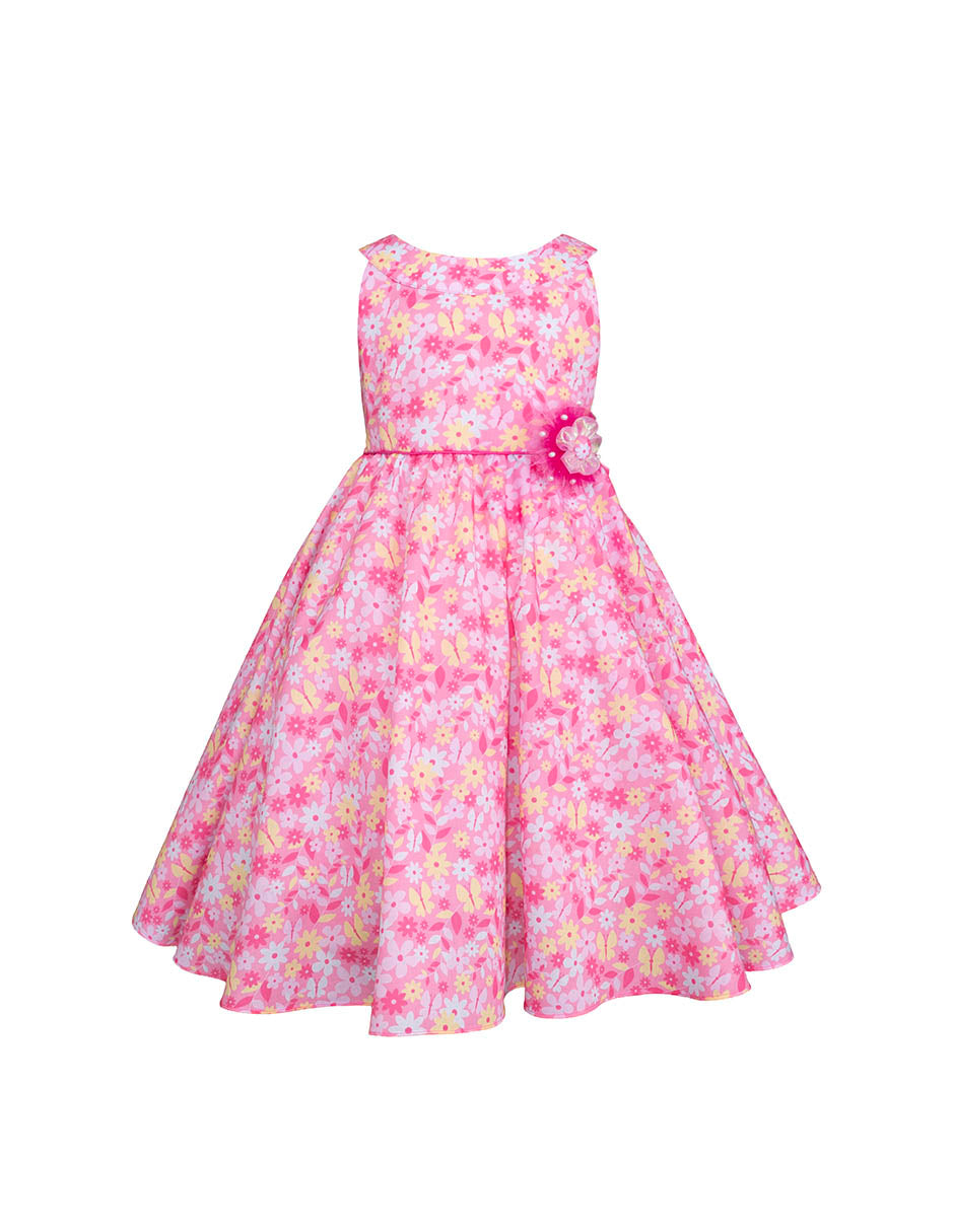 Llena la primavera de color y alegría con este vestido floreado en tono rosa fucsia, diseñado para que cada niña brille en sus momentos más especiales. Su estampado floral vibrante transmite frescura, diversión y dulzura, ideal para celebrar la temporada más alegre del año.