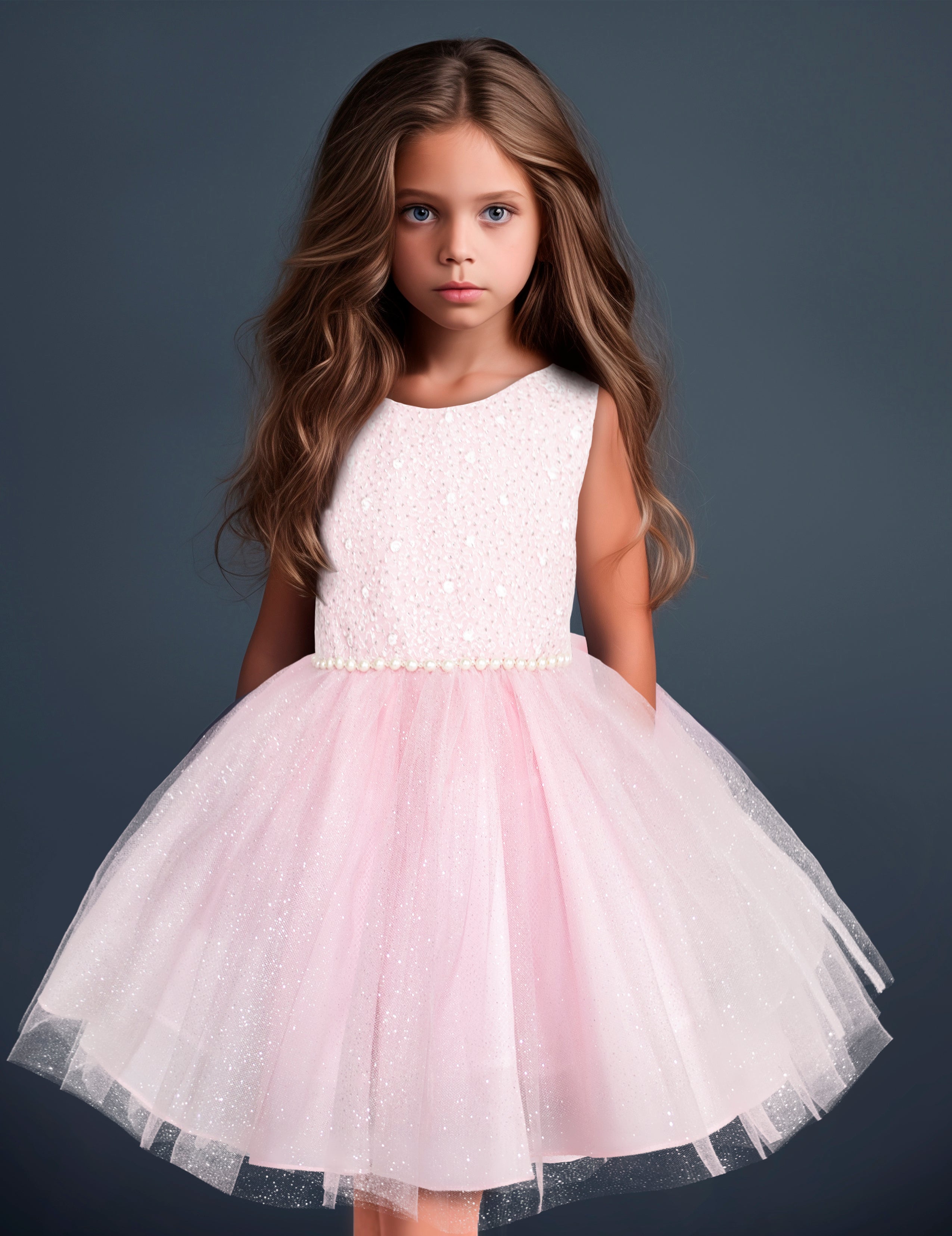 Celebra los momentos mágicos con el Vestido para niñas, una creación que mezcla el resplandor del amanecer con la suavidad del rosa. Este vestido, adornado con lentejuelas y una cinta de perlas, es perfecto para convertir cualquier evento en una celebración encantadora y elegante.