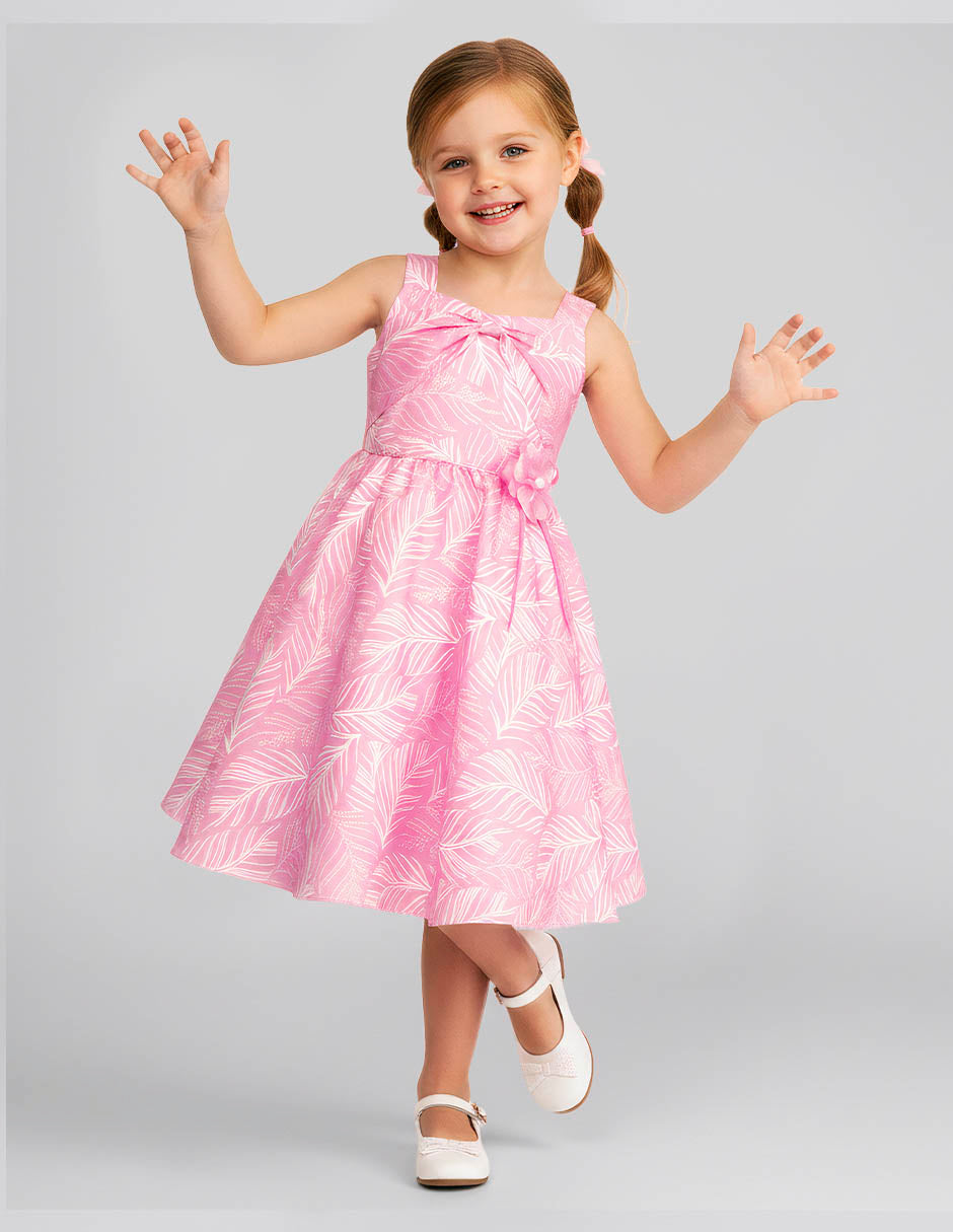 Haz que cada momento se convierta en un recuerdo inolvidable con este vestido rosa para niña, diseñado para brillar en cualquier ocasión especial. Su delicado estampado en tono rosa con detalles en blanco, combinado con un hermoso moño decorativo en la cintura y falda amplia con caída elegante, lo convierten en la elección perfecta para fiestas, cumpleaños, eventos escolares y celebraciones familiares.
