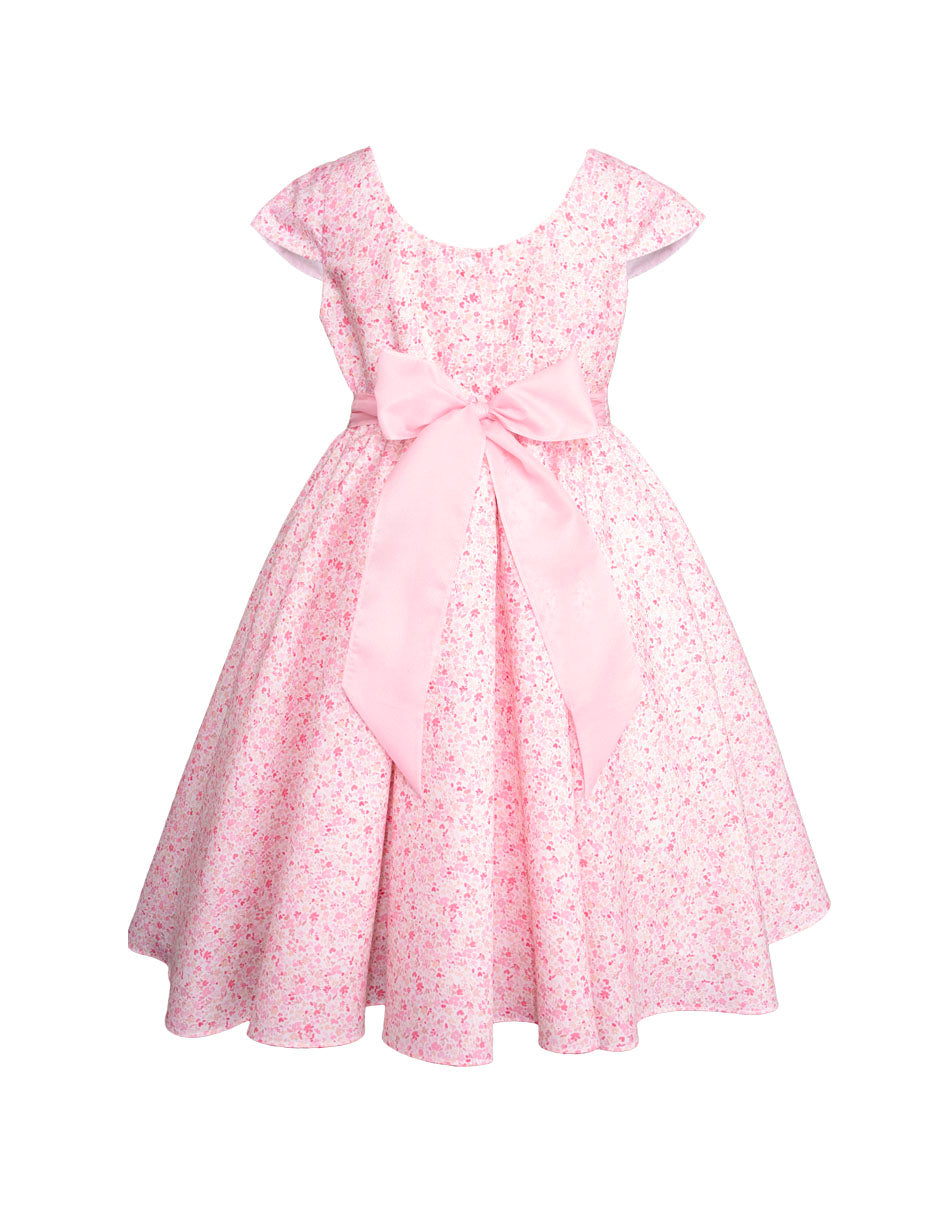 Haz realidad los sueños de tu pequeña con este encantador vestido floral de la marca Gerat. Ideal para eventos especiales, este vestido para niña en tonos rosa claro presenta un diseño elegante con falda amplia tipo campana, moño decorativo en la espalda y un delicado estampado de flores. Incluye una torerita rosa con moño y aplicaciones bordadas, perfecta para mantenerla abrigada sin perder el estilo.