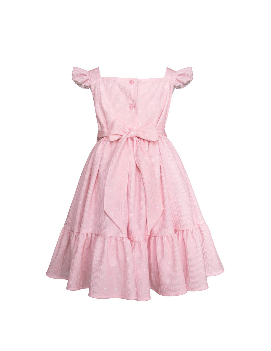 Dale a tu pequeña un look lleno de dulzura y elegancia con este vestido rosa pastel para niña, diseñado especialmente para lucir espectacular en cualquier ocasión especial. Su delicado diseño con textura sutil, pequeños detalles bordados y un hermoso moño lateral hacen de este vestido infantil una opción encantadora y sofisticada.